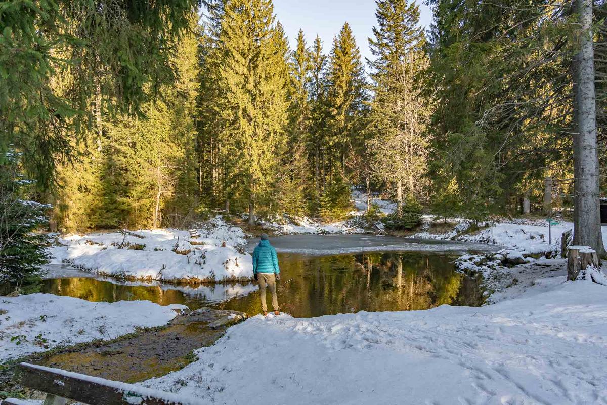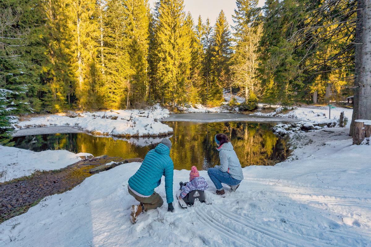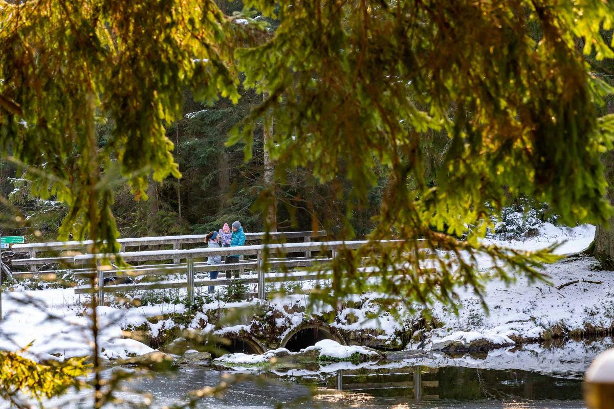 mit der Waldbahn zum Böhmhof von dort zum idyllisch gelegenen Schwellweiher eine herrliche Aussicht von der Mittelstation am Silberberg läutet das Ende der Tour ein.